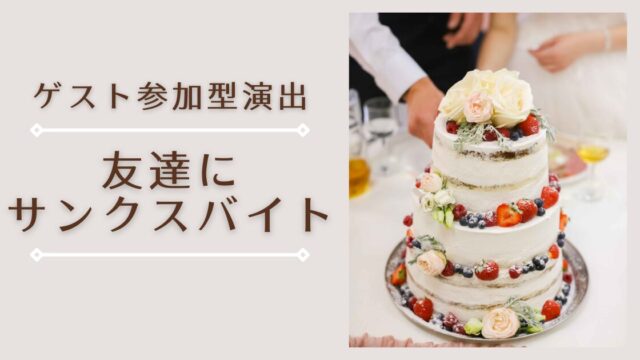 結婚準備 【結婚式】友達に喜ばれるサンクスバイト|くじ引きで楽しく演出! 結婚式でゲスト参加型の演出を取り入れたい!というにオススメの演出が「サンクスバイト」。そこでこの記事では、筆者の経験をもとに友人へのサンクスバイトついてお伝えします。サンクスバイトをする人の選び方や、オススメの曲までをご紹介。 2021.06.16 結婚準備