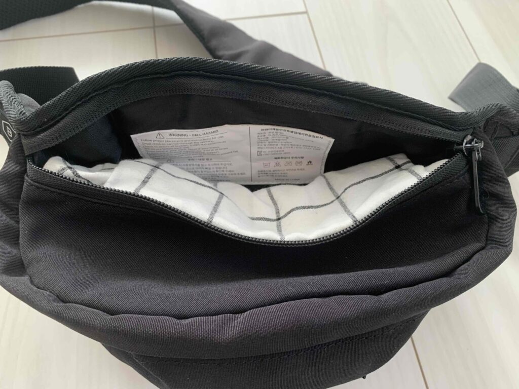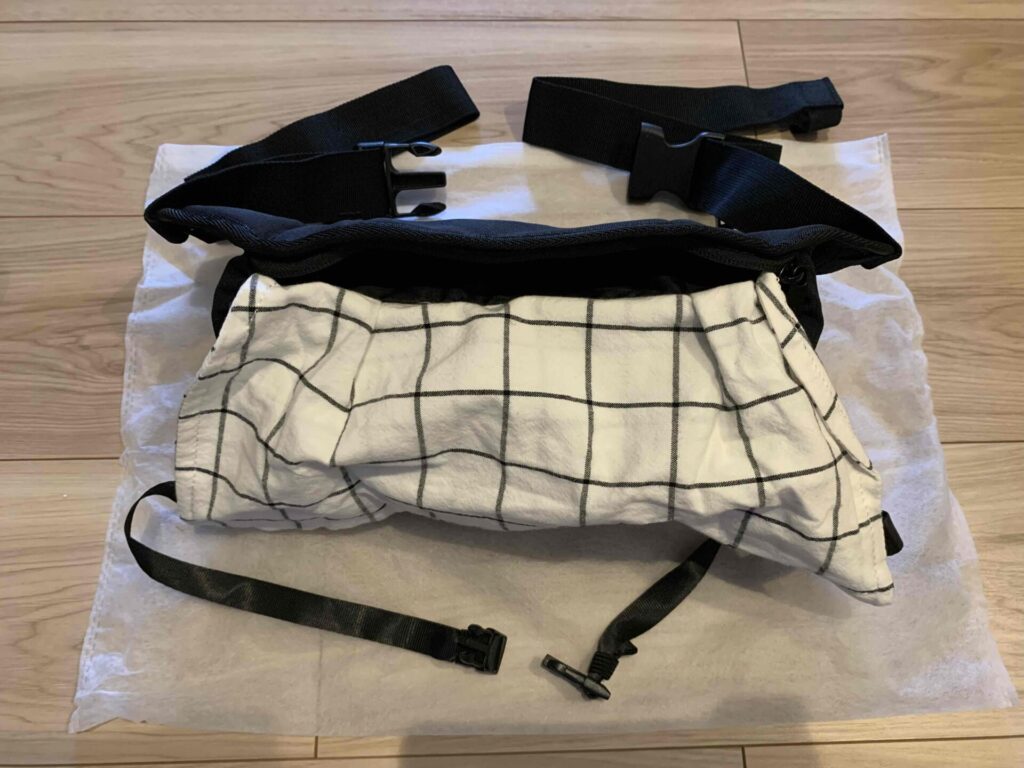 ショルダーバッグとして使えるのは便利ですが、抱っこしている状態だと中の荷物は少し取り出しにくいです。